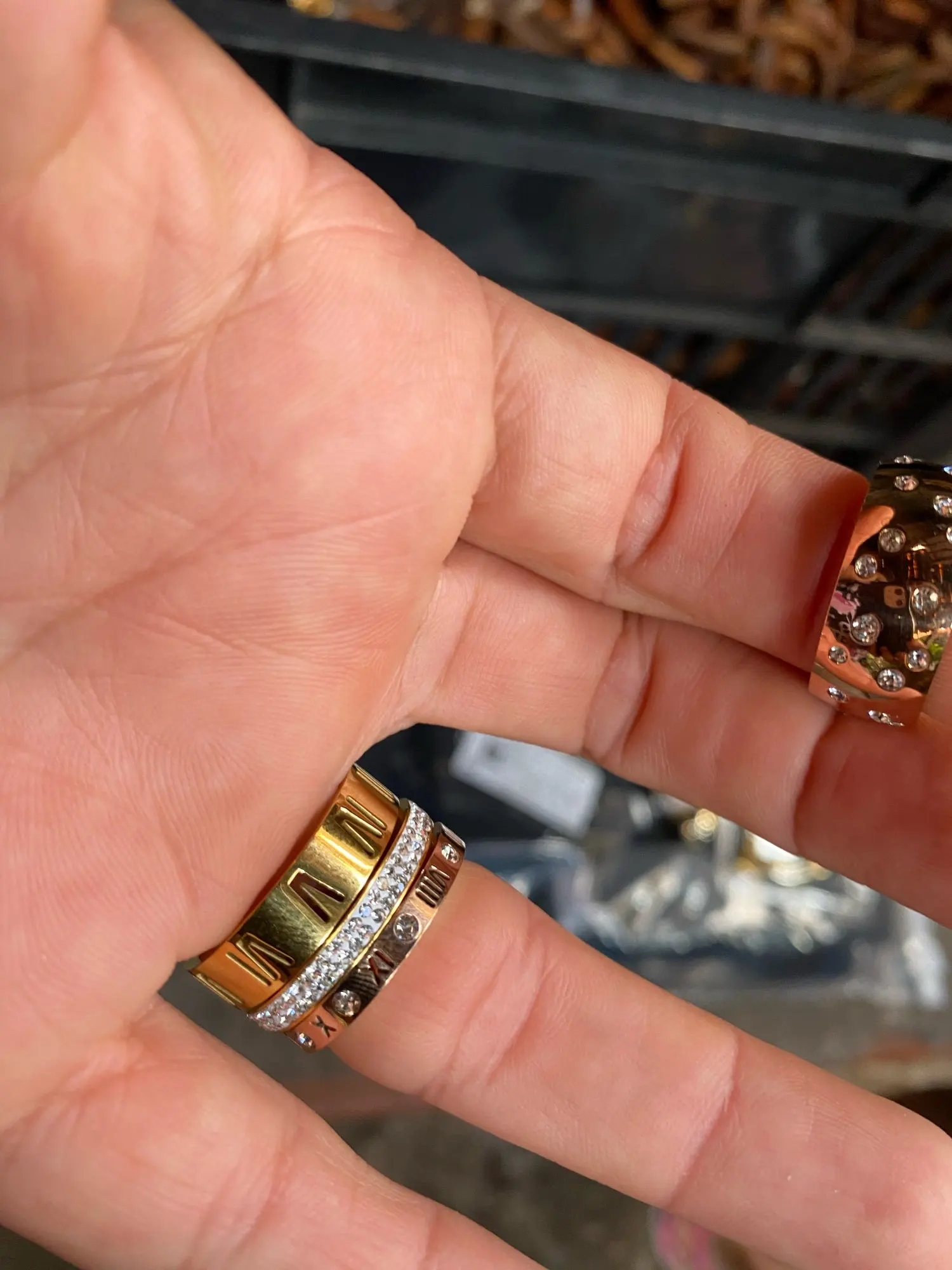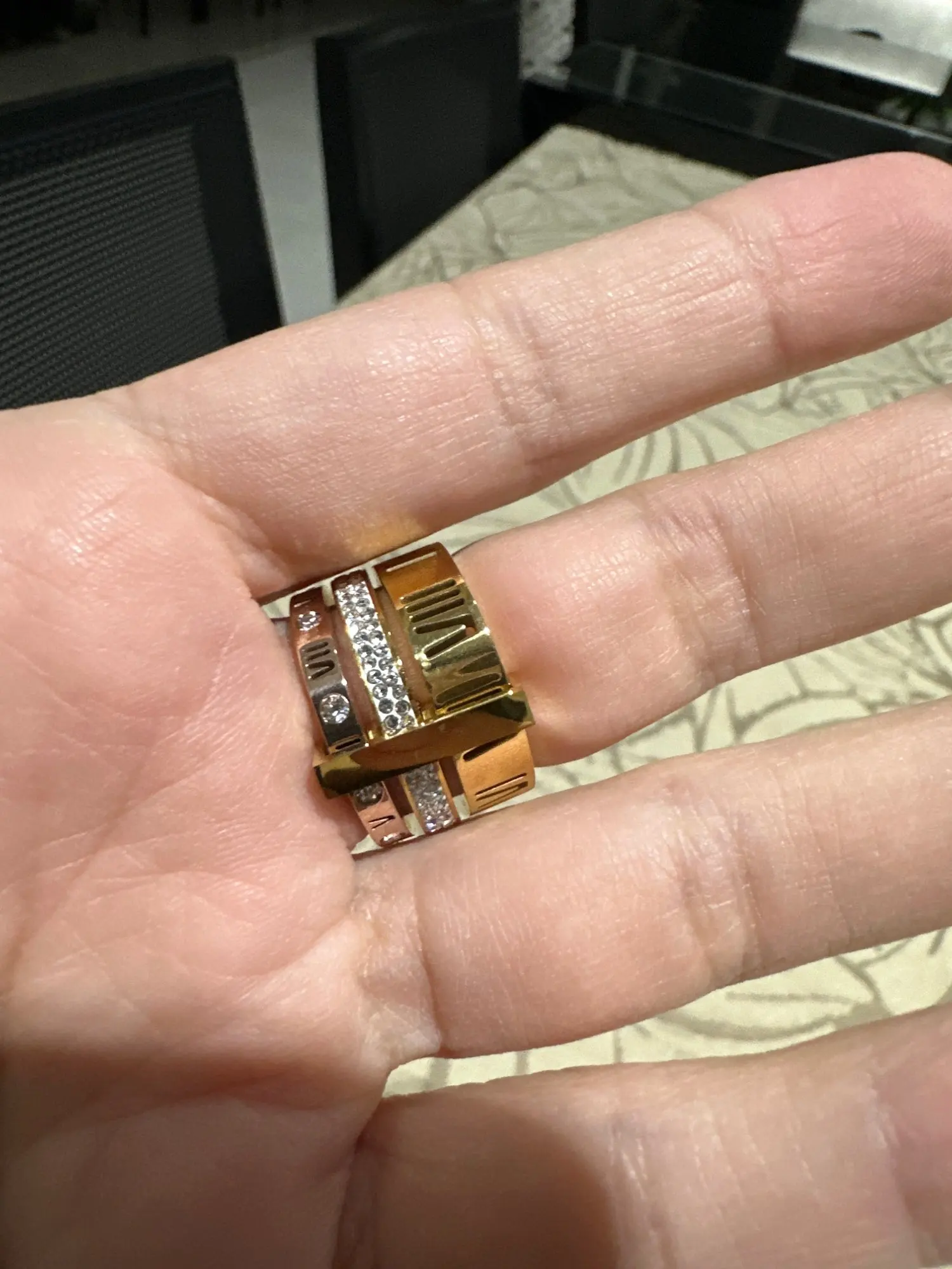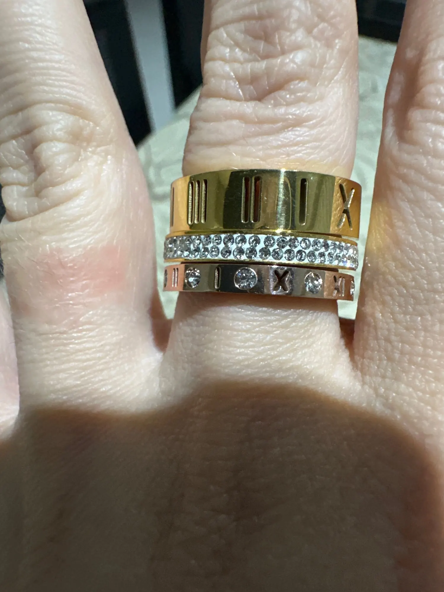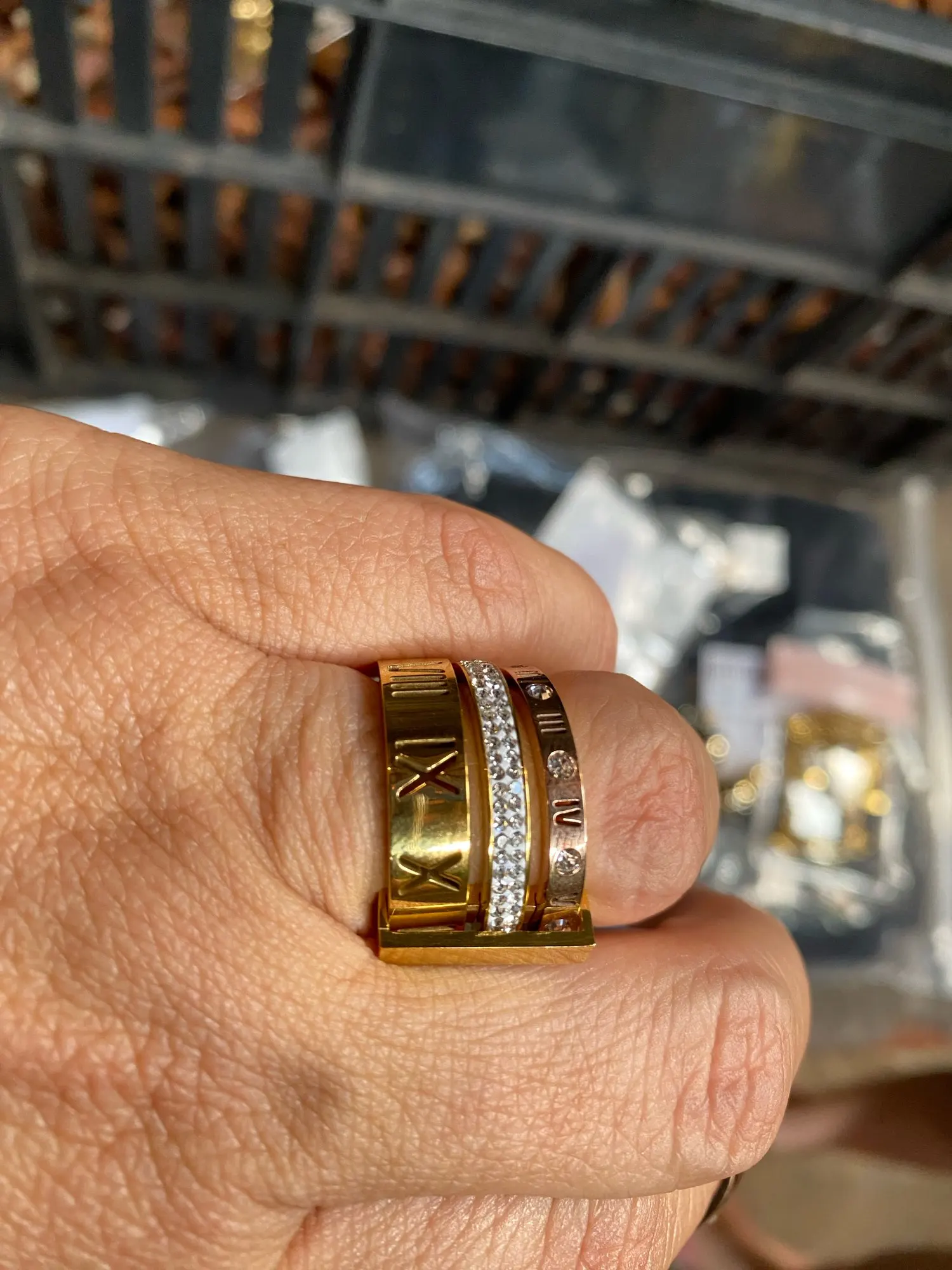 Anel com três fileiras e influência dos algarismos romanos, ideal para valorizar seus dedos com história.